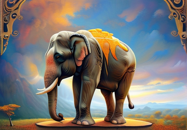 在佛教经典《分别功德论》中,大象是"光明相"与"吉祥相"的具象化表达。其硕大的耳朵被喻为佛陀的聆听能力,能接纳八方众生的祈愿;弯曲的长鼻则象征智慧的通达性,能在纷繁世事中精准取舍。这种看似矛盾的形态——既笨重却灵动,既野性却驯服——恰恰构成了佛教对"无我"境界的精妙诠释。