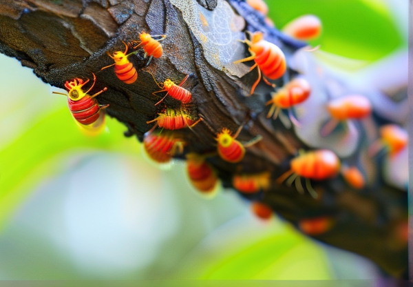 3. **成虫羽化期(8-9月)**:成虫破蛹后主要进行交配和产卵,它们具有趋光性,夜间活动加剧可能造成路灯周围虫群聚集。某市监测站数据显示,单株合欢树可寄生成虫超200只。